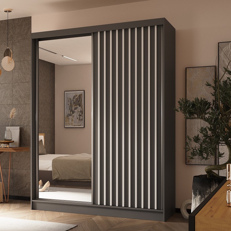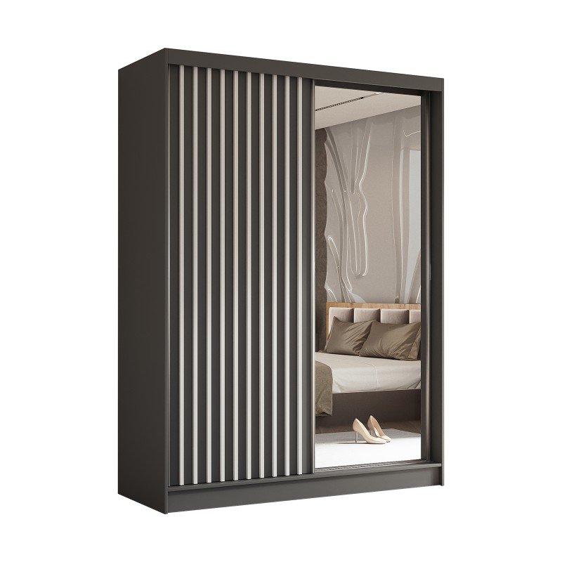 Szafa Przesuwna LAMELLO 160 cm z Lustrem Szafa Dwudrzwiowa Szara
