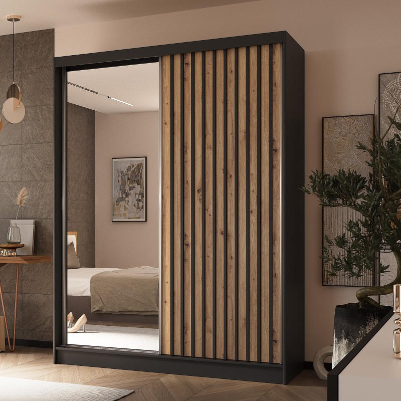 Szafa Przesuwna LAMELLO 160 cm z Lustrem Szafa Dwudrzwiowa Czarna