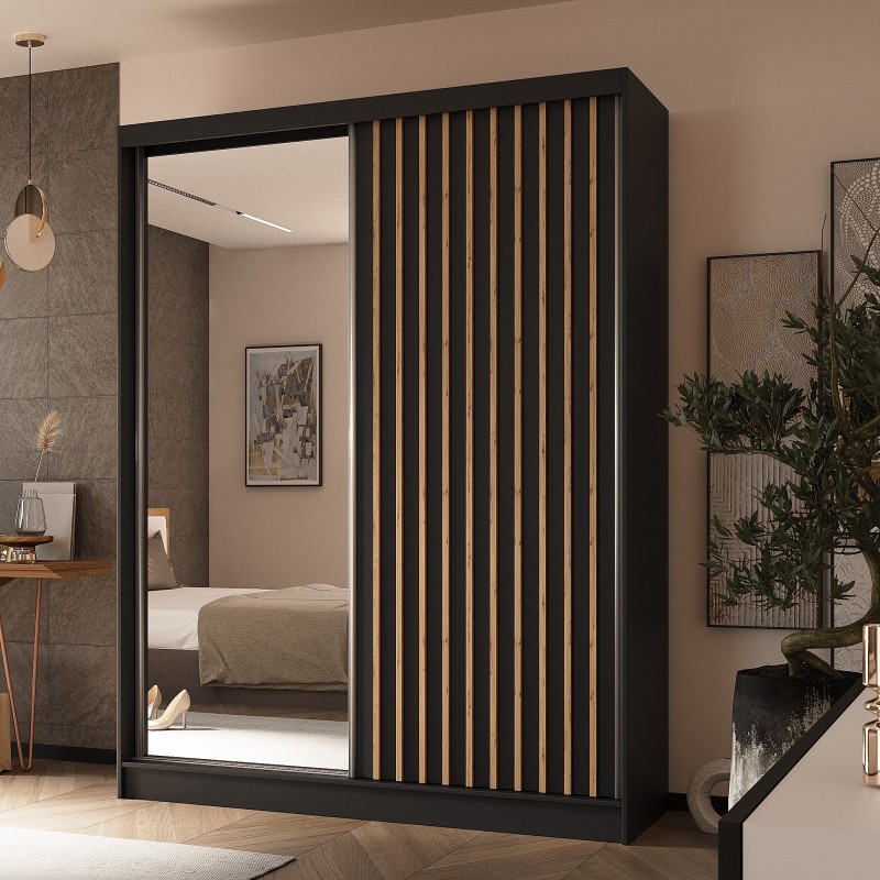 Szafa Przesuwna LAMELLO 160 cm z Lustrem Szafa Dwudrzwiowa Czarna