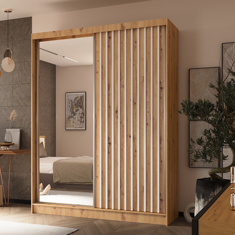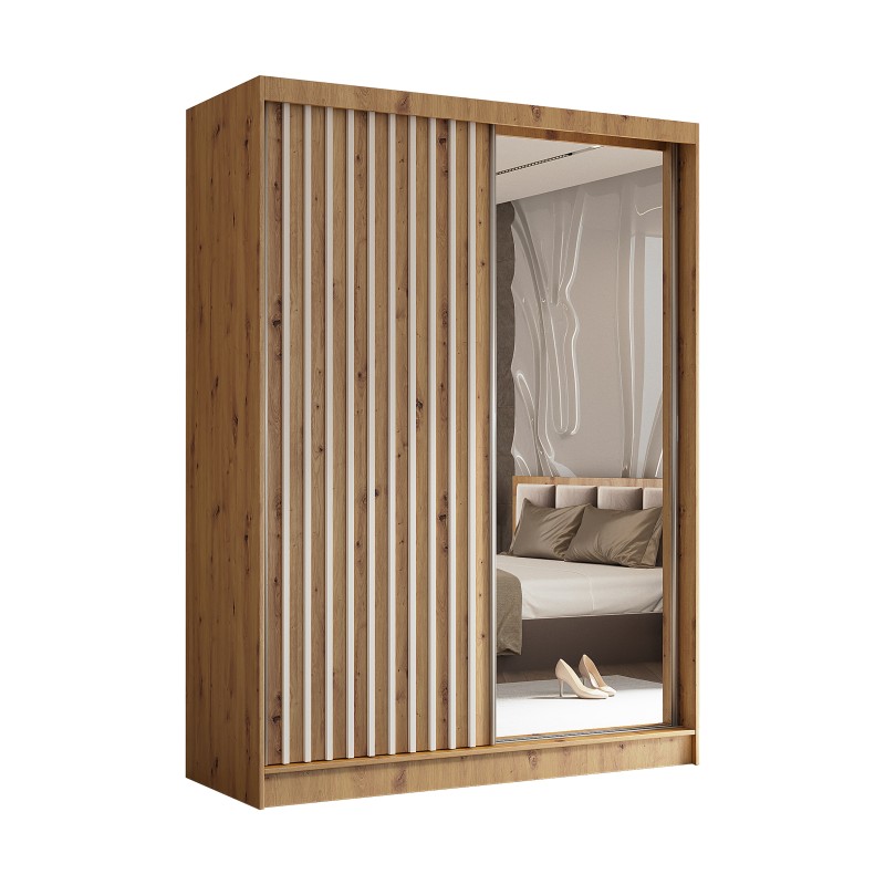 Szafa Przesuwna LAMELLO 160 cm z Lustrem Szafa Dwudrzwiowa Dąb artisan