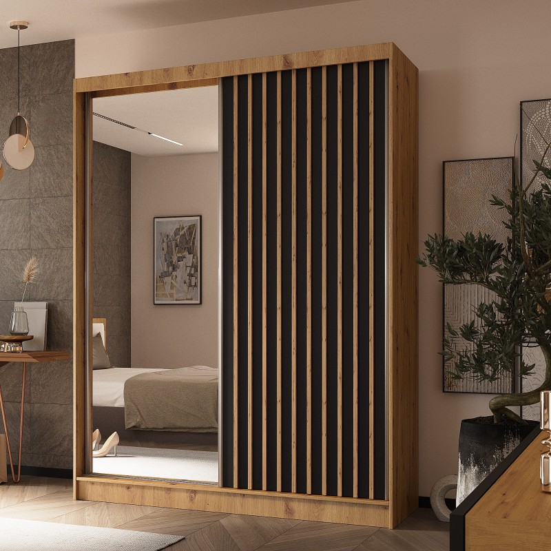 Szafa Przesuwna LAMELLO 160 cm z Lustrem Szafa Dwudrzwiowa Dąb artisan