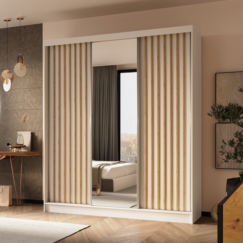 Szafa Przesuwna LAMELLO 180 cm z Lustrem Szafa Trzydrzwiowa Biała
