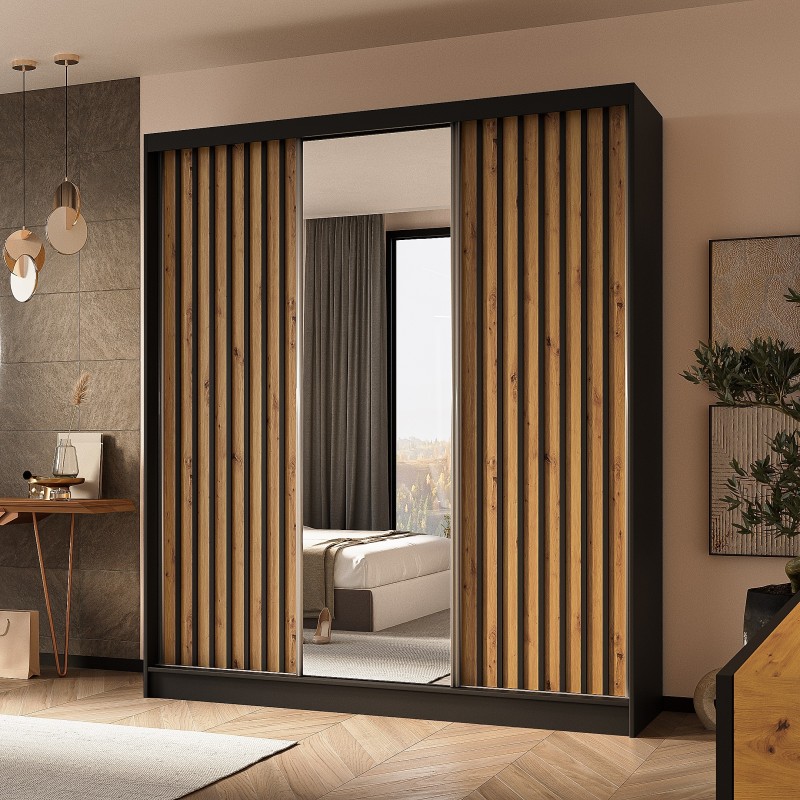 Szafa Przesuwna LAMELLO 180 cm z Lustrem Szafa Trzydrzwiowa Czarna