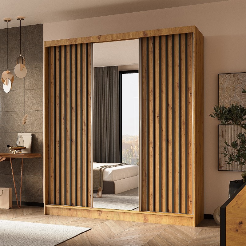Szafa Przesuwna LAMELLO 180 cm z Lustrem Szafa Trzydrzwiowa Dąb artisan