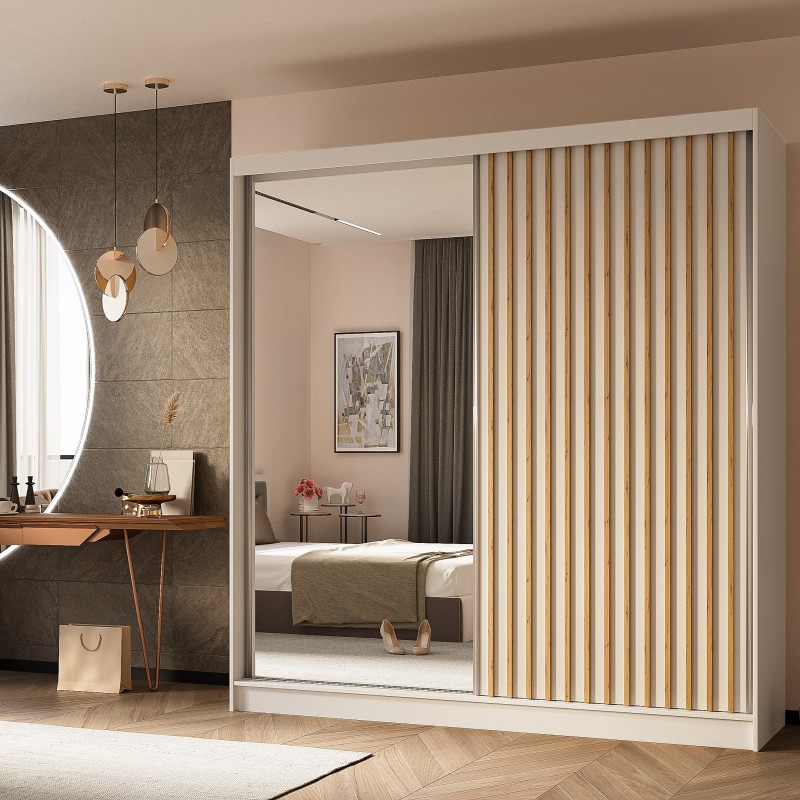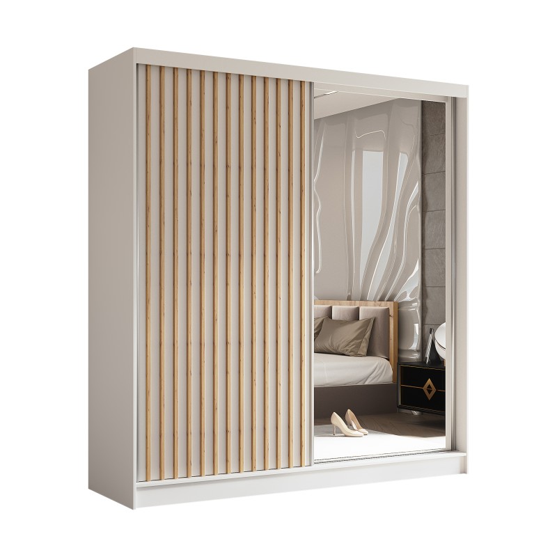 Szafa Przesuwna LAMELLO 200 cm z Lustrem Szafa Dwudrzwiowa Biała