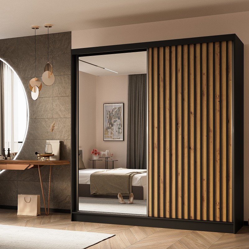 Szafa Przesuwna LAMELLO 200 cm z Lustrem Szafa Dwudrzwiowa Czarna