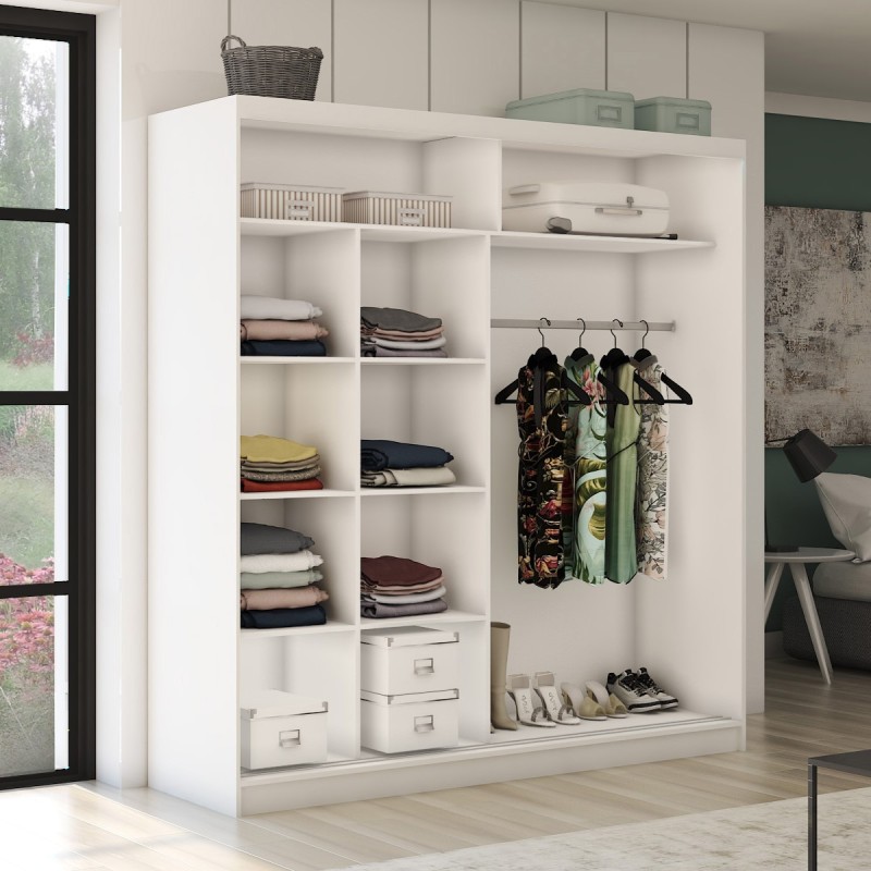 - Dzięki przemyślanemu układowi wnętrza umożliwia łatwą organizację ubrań, obuwia i akcesoriów. Zawsze masz wszystko pod ręką, a Twoje rzeczy są starannie uporządkowane.