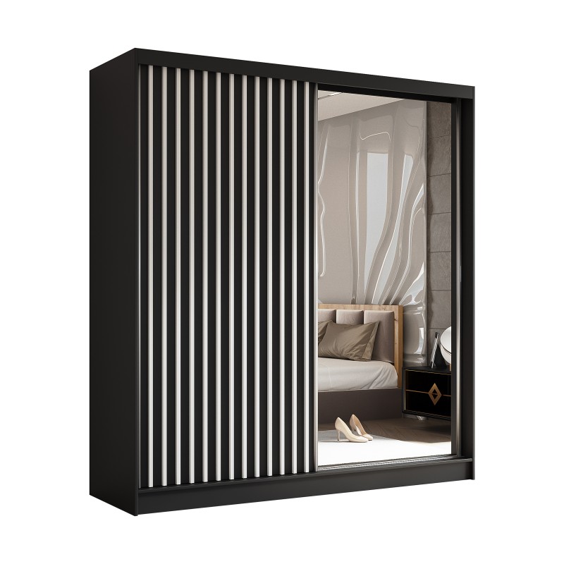 Szafa Przesuwna LAMELLO 200 cm z Lustrem Szafa Dwudrzwiowa Czarna