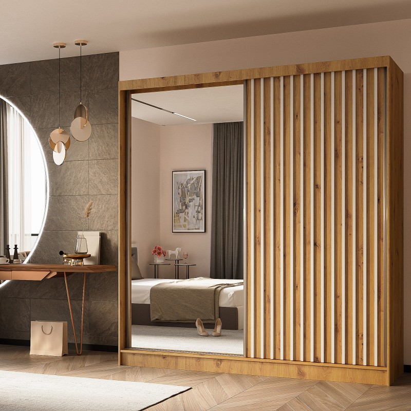 Szafa Przesuwna LAMELLO 200 cm z Lustrem Szafa Dwudrzwiowa Dąb artisan