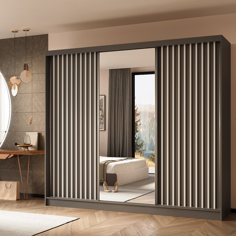 Szafa Przesuwna LAMELLO 240 cm z Lustrem Szafa Trzydrzwiowa Szara