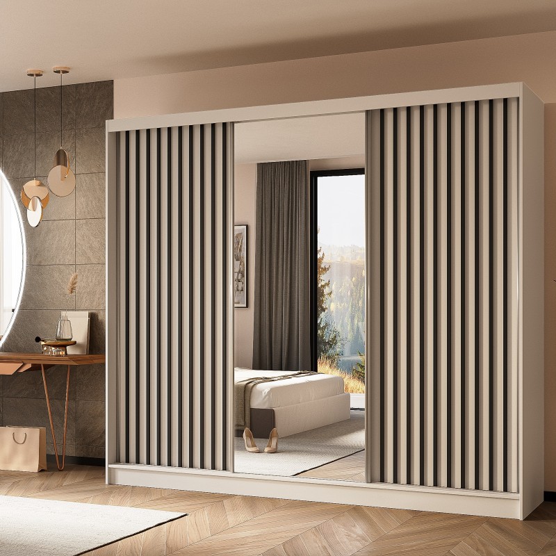 Szafa Przesuwna LAMELLO 240 cm z Lustrem Szafa Trzydrzwiowa Biała