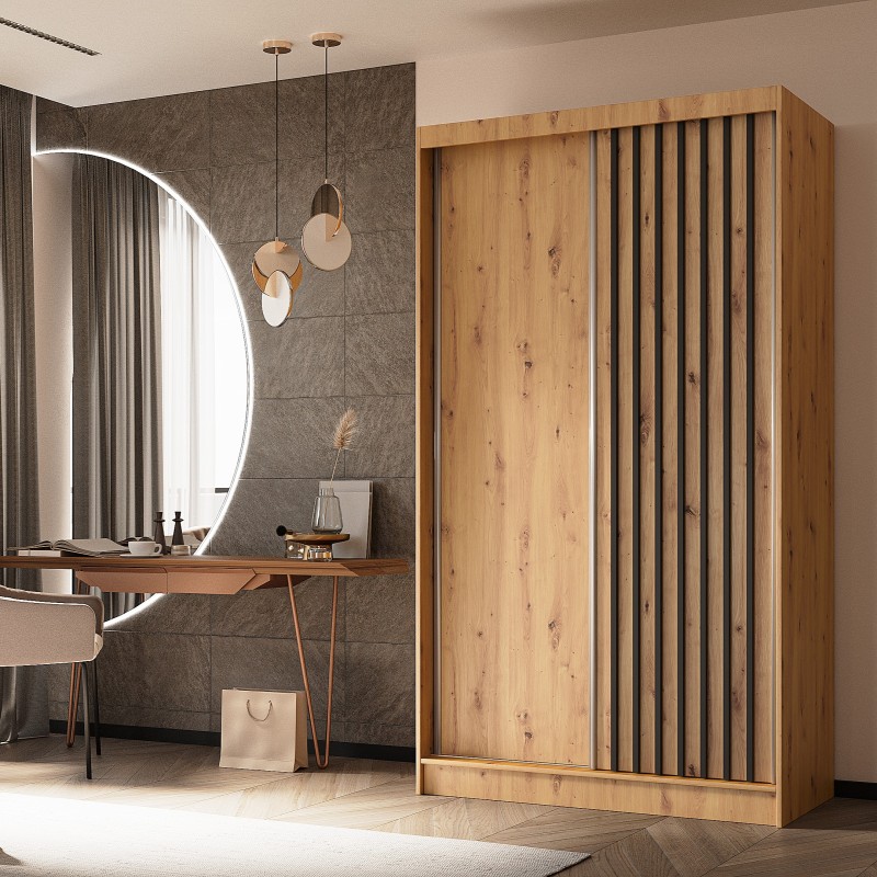 Szafa Przesuwna LAMELLO 120 cm Szafa Dwudrzwiowa Dąb artisan