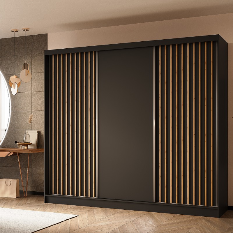 Szafa Przesuwna LAMELLO 240 cm Szafa Trzydrzwiowa Czarna