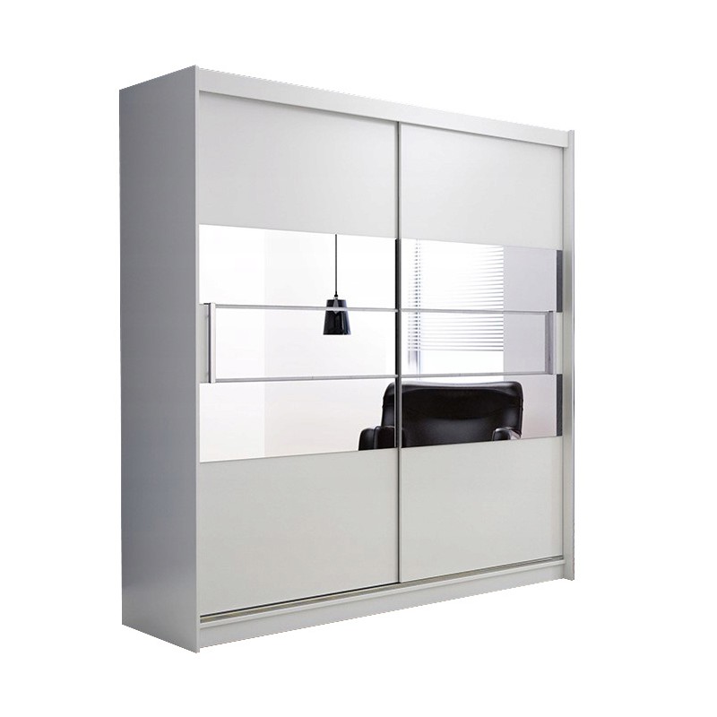 Szafa Przesuwna LUIGI 200 cm z Lustrem Szafa Dwudrzwiowa Biała