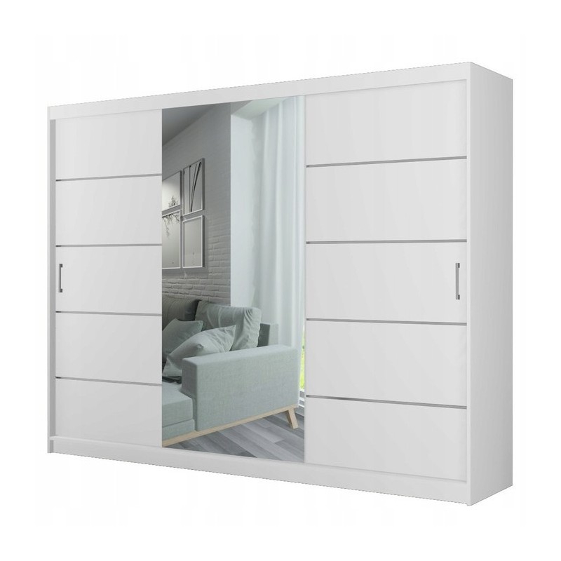 Szafa Przesuwna PORTIANO 196 cm z Lustrem Szafa Trzydrzwiowa Biała
