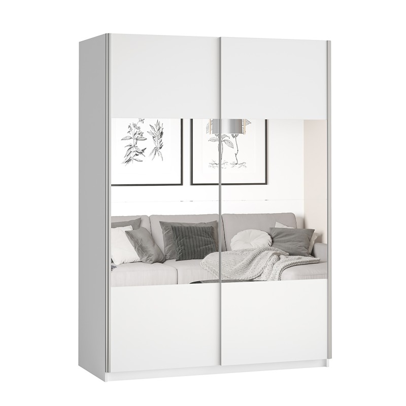 Szafa Przesuwna BETTINA 150 cm z Lustrem Szafa Dwudrzwiowa Biała