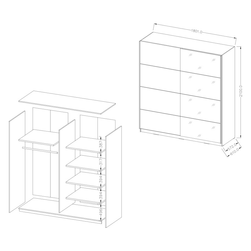 - Dzięki przemyślanemu układowi wnętrza umożliwia łatwą organizację ubrań, obuwia i akcesoriów. Zawsze masz wszystko pod ręką, a Twoje rzeczy są starannie uporządkowane.