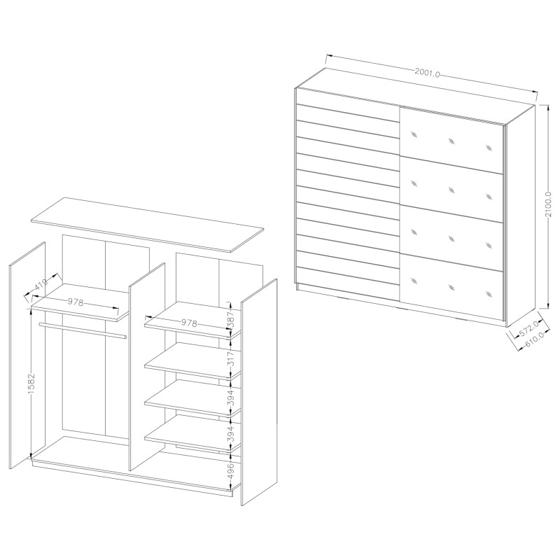 - Dzięki przemyślanemu układowi wnętrza umożliwia łatwą organizację ubrań, obuwia i akcesoriów. Zawsze masz wszystko pod ręką, a Twoje rzeczy są starannie uporządkowane.