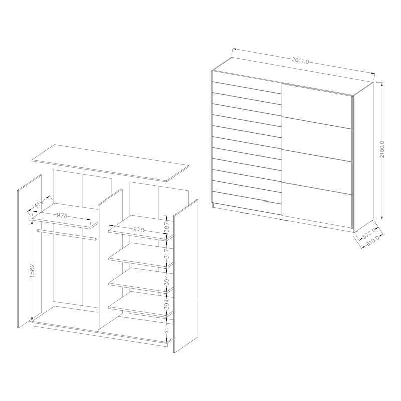 - Dzięki przemyślanemu układowi wnętrza umożliwia łatwą organizację ubrań, obuwia i akcesoriów. Zawsze masz wszystko pod ręką, a Twoje rzeczy są starannie uporządkowane.