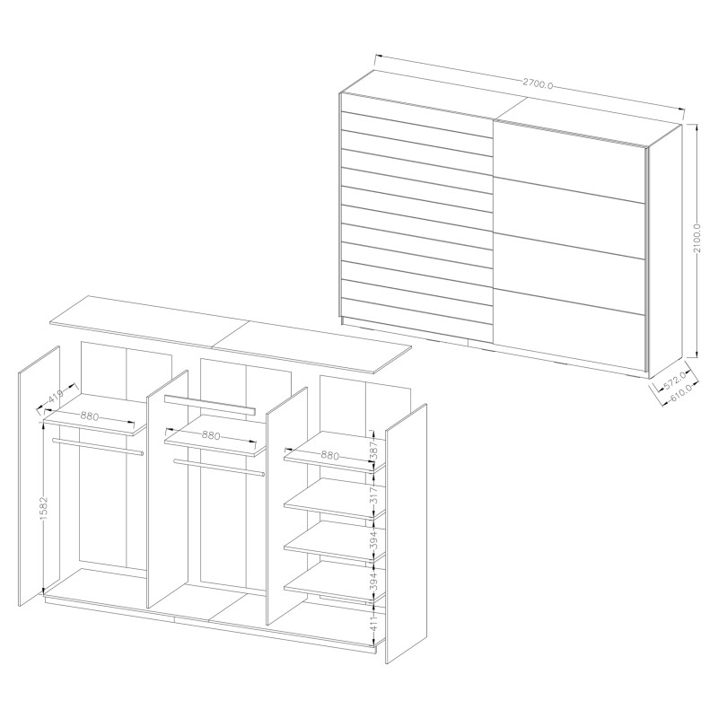 - Dzięki przemyślanemu układowi wnętrza umożliwia łatwą organizację ubrań, obuwia i akcesoriów. Zawsze masz wszystko pod ręką, a Twoje rzeczy są starannie uporządkowane.
