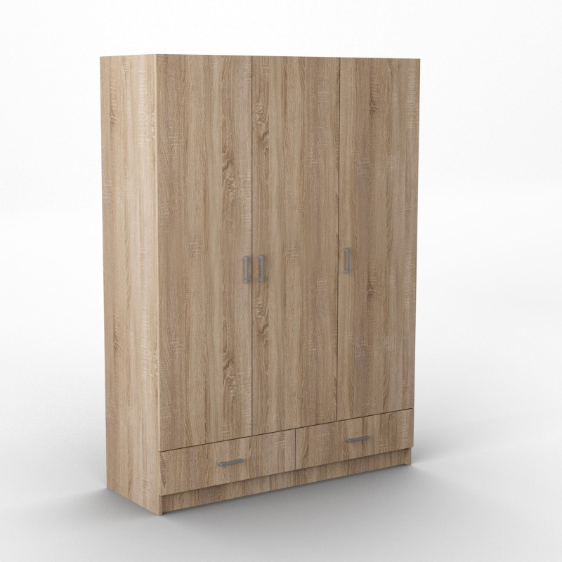 Szafa Uchylna PINELLO 144 cm Szafa Trzydrzwiowa z Szufladami Dąb sonoma