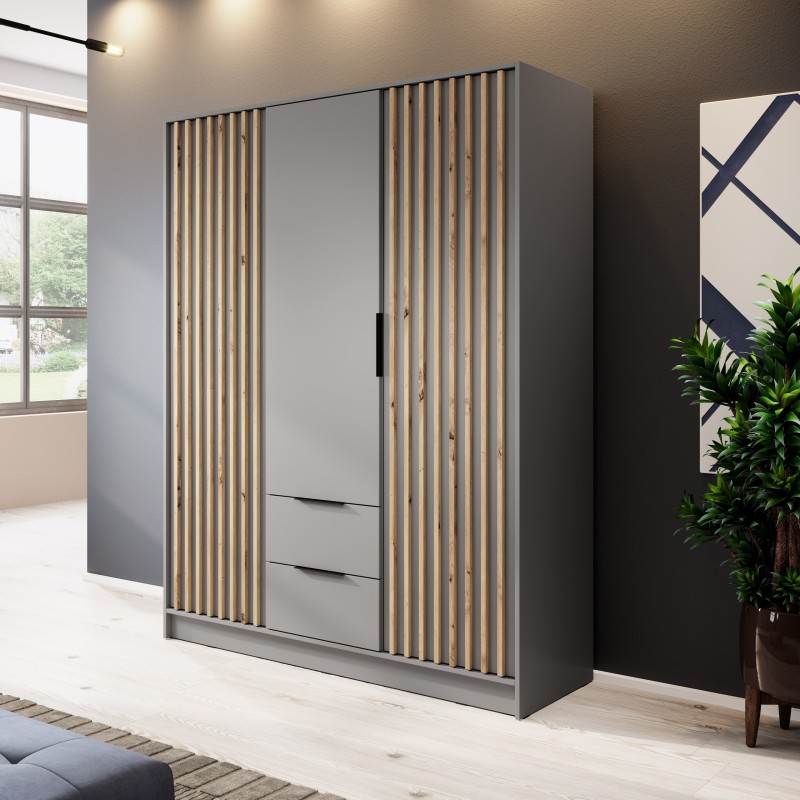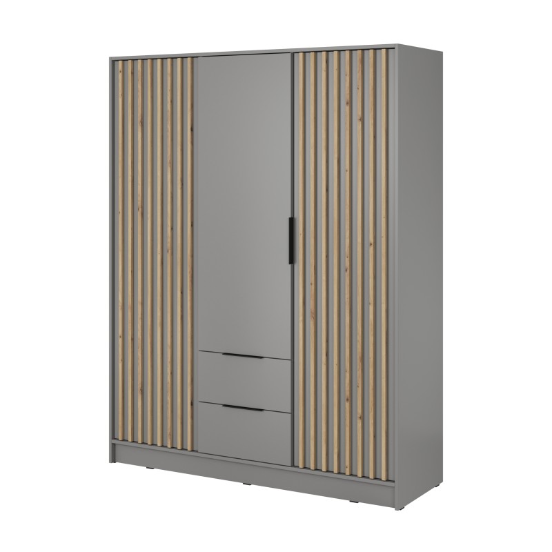 Szafa Uchylna NELIANA 155 cm Szafa Trzydrzwiowa z Szufladami Szara