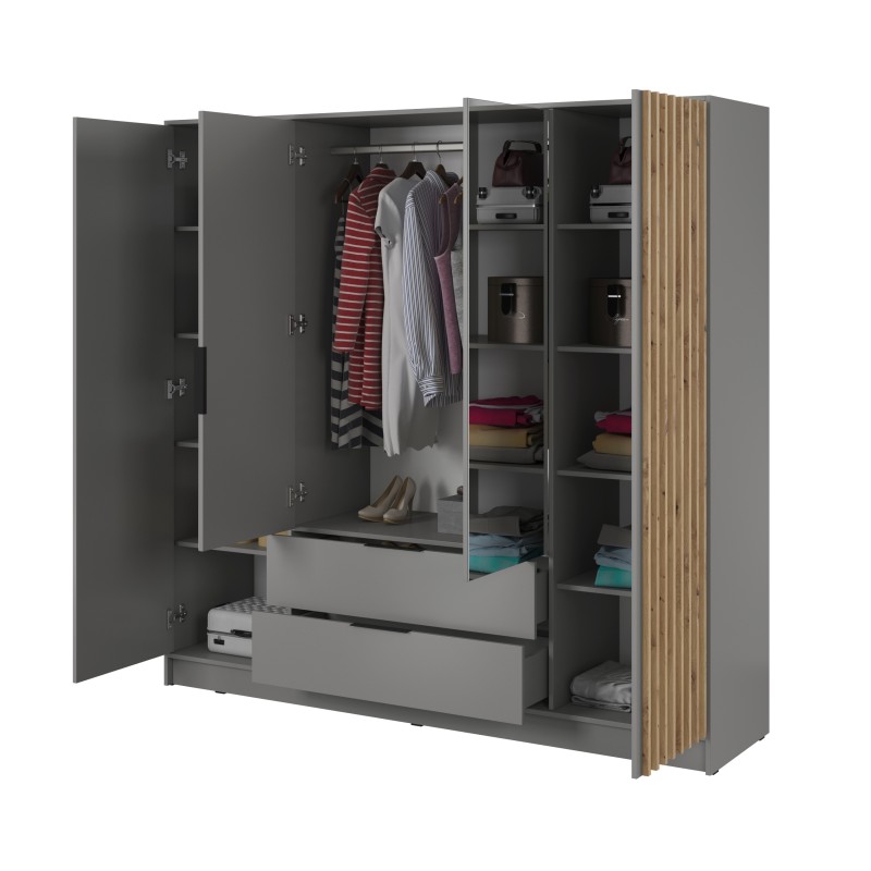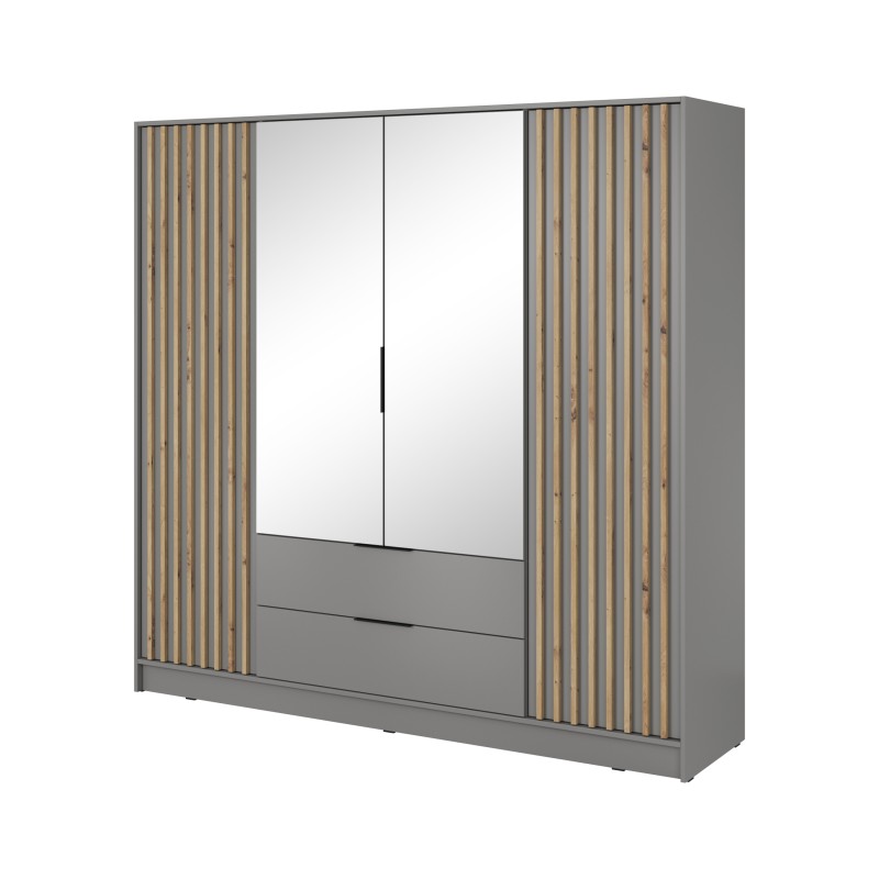 Szafa Uchylna NELIANA 206 cm z Lustrem Szafa Czterodrzwiowa z Szufladami Szara