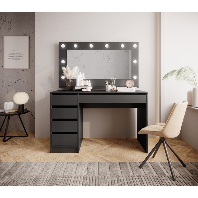 Masseno Toaletka do Sypialni LIA z Lustrem LED i Szufladami Nowoczesna Biurko do Makijażu Antracyt