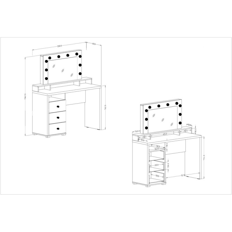 Masseno Toaletka do Sypialni BREZZA z Lustrem LED i Szufladami Nowoczesna Biurko do Makijażu Biała